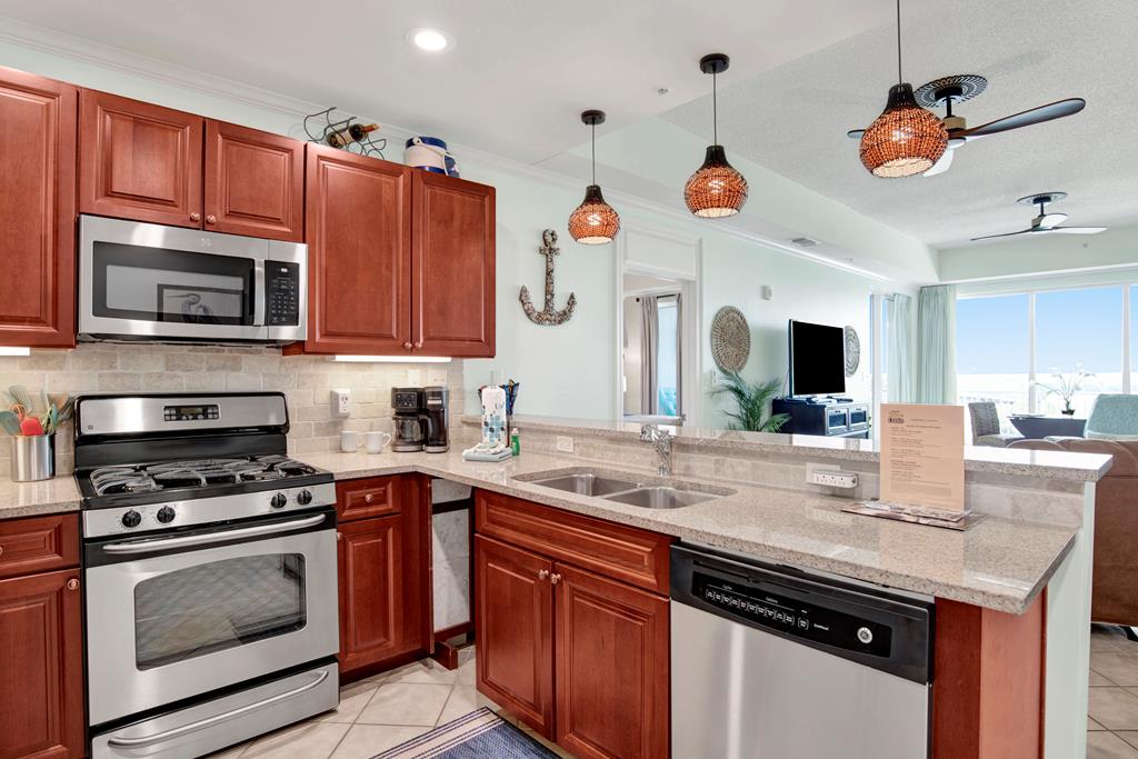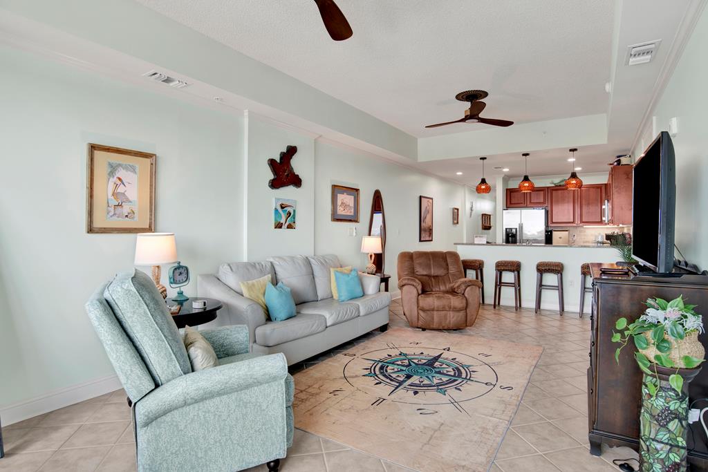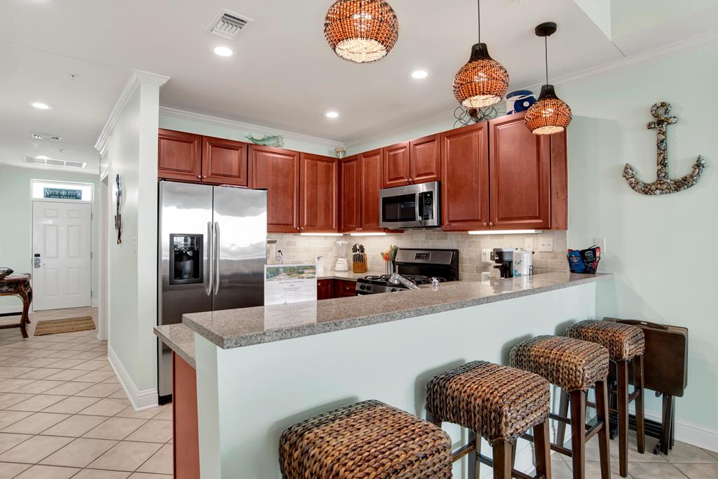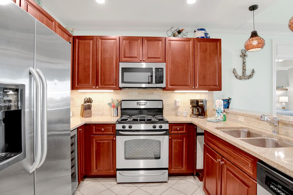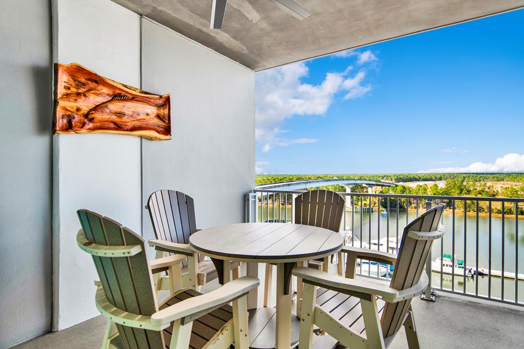 Coastal 2 bedroom, 2 bath condominium with views of the Intracoastal Waterway and The Wharf Marina. Fully appointed kitchen includes stainless steel appliances, granite counter tops, wine cooler, automatic ice maker. Separate laundry area with stackable washer and dryer. Other features include master bath with air jet tub, separate glass enclosed shower and double vanities. Balcony equipped with natural gas grill for your enjoyment. Living Area features a 55" Flat Screen TV.