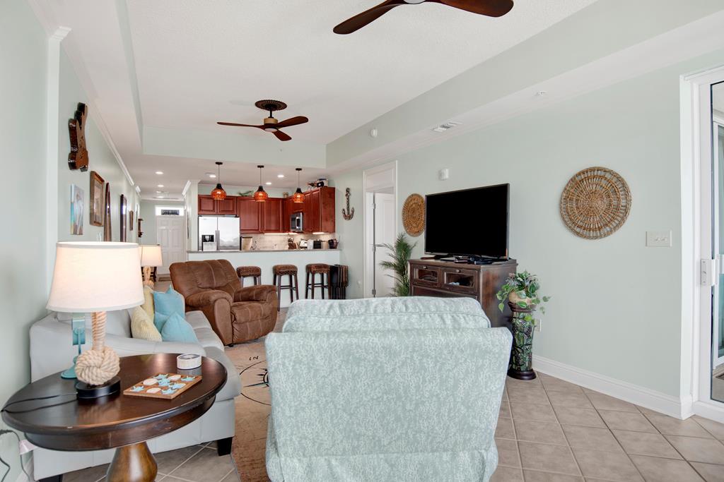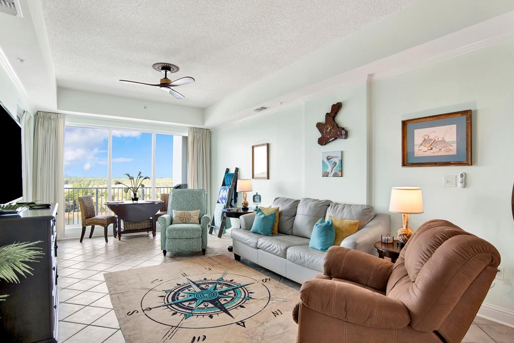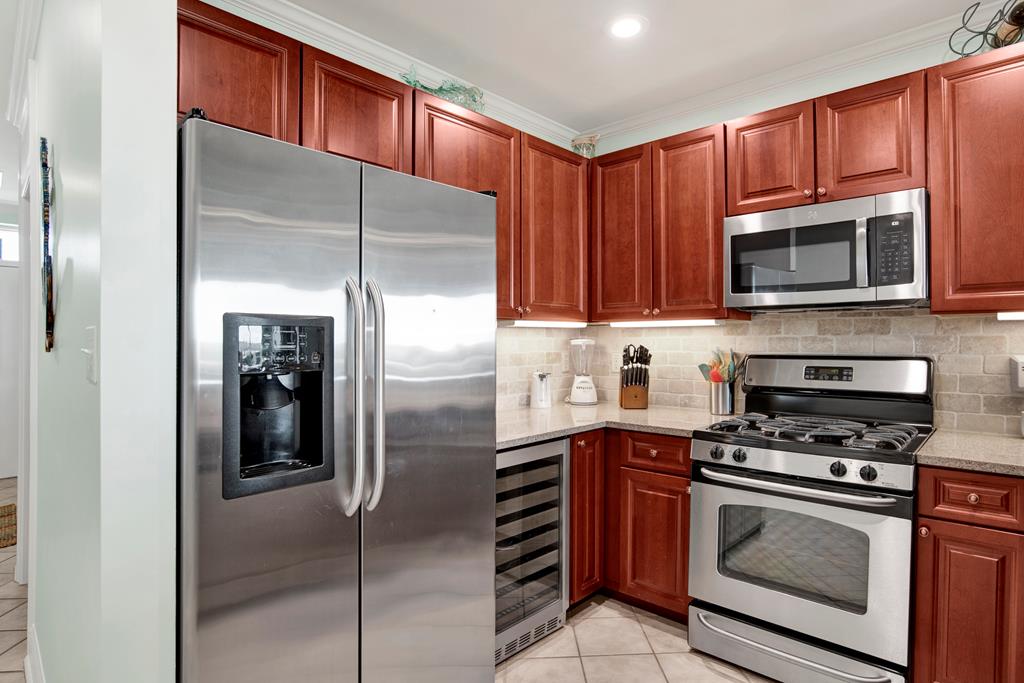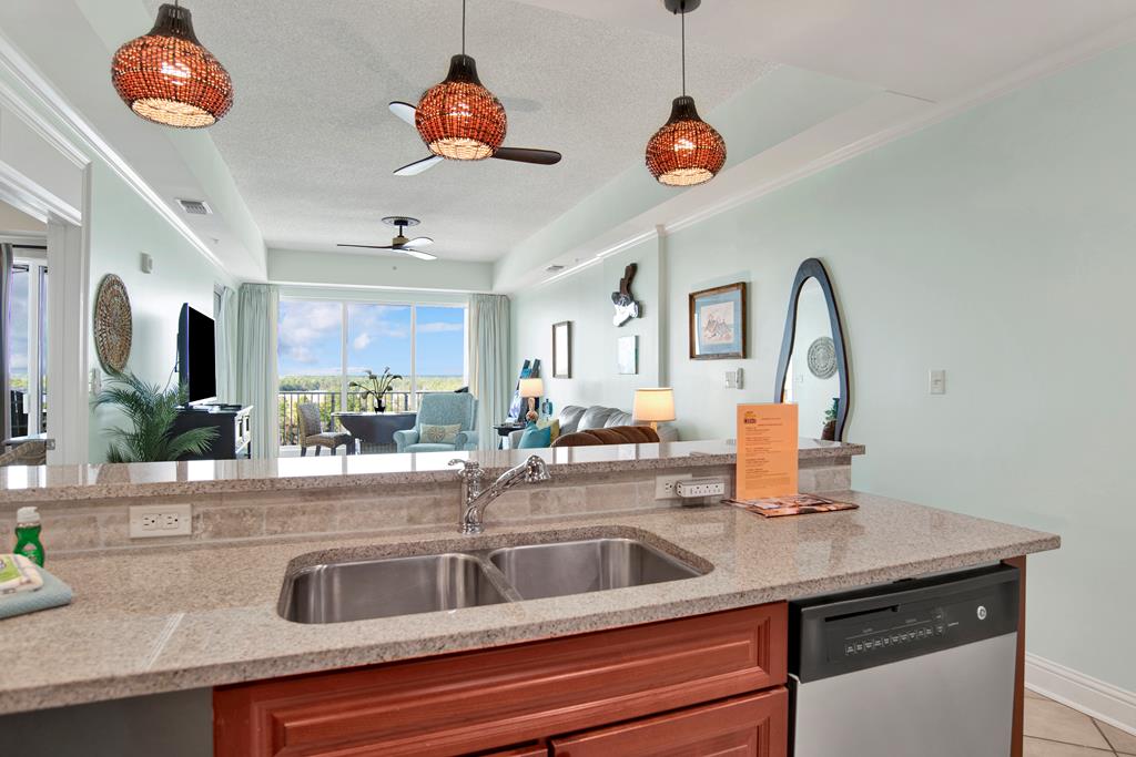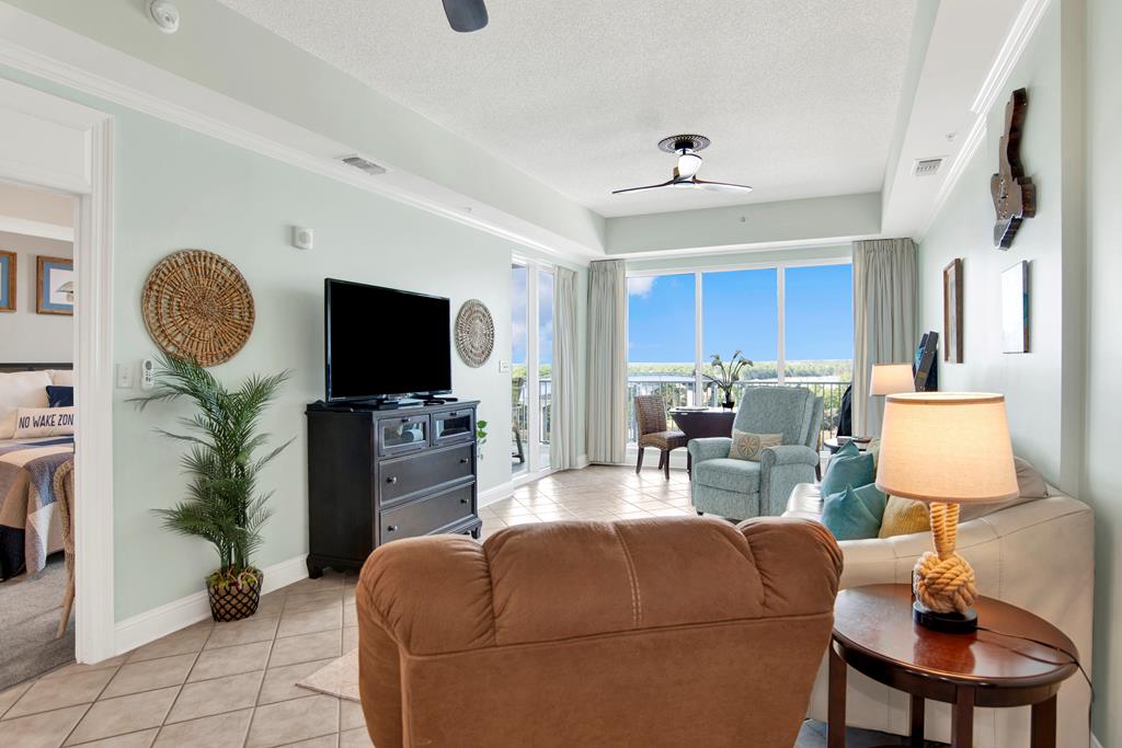 Coastal 2 bedroom, 2 bath condominium with views of the Intracoastal Waterway and The Wharf Marina. Fully appointed kitchen includes stainless steel appliances, granite counter tops, wine cooler, automatic ice maker. Separate laundry area with stackable washer and dryer. Other features include master bath with air jet tub, separate glass enclosed shower and double vanities. Balcony equipped with natural gas grill for your enjoyment. Living Area features a 55" Flat Screen TV.